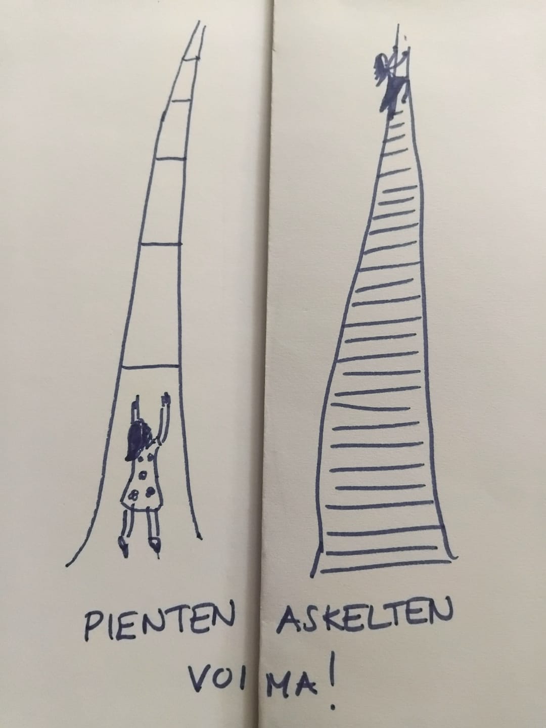Vanhojen uskomusten ja toimintatapojen muuttaminen vaatii toistoja. Otat ensimmäisen pienen askeleen ja sitten toisen...