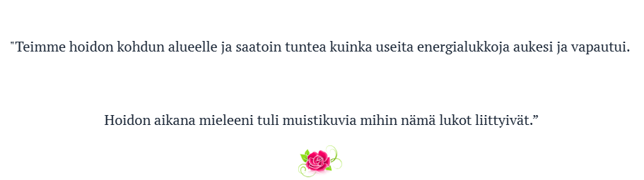 Vapauttamaan energiaa, joka on ollut tukossa vuosien, jopa vuosikymmenten ajan. Avaat kehosi energiaa virtaamaan taas vapaammin.