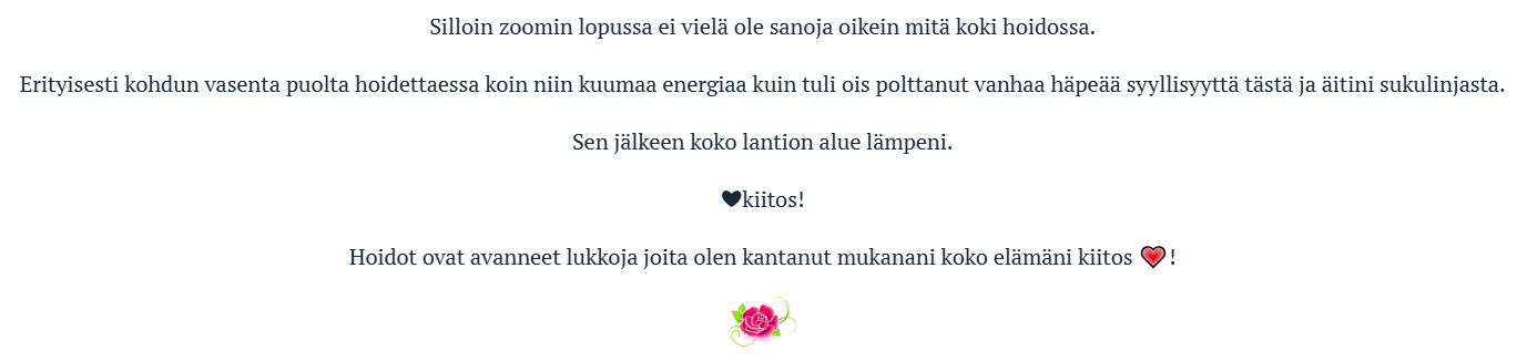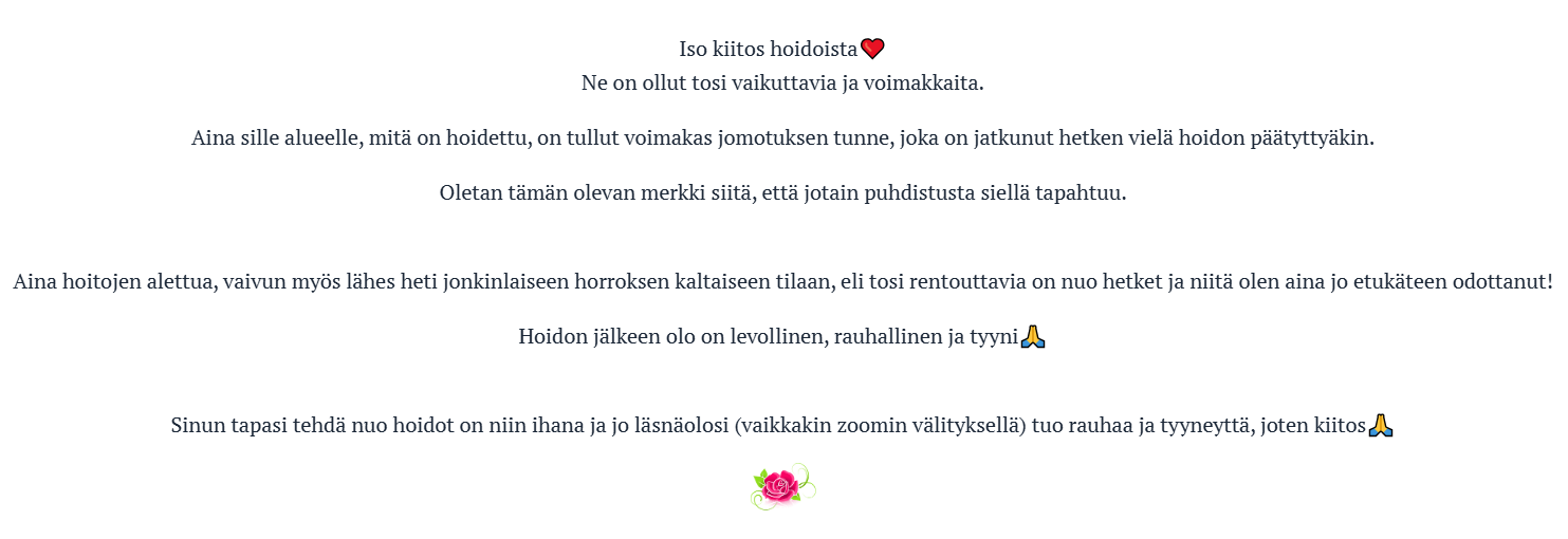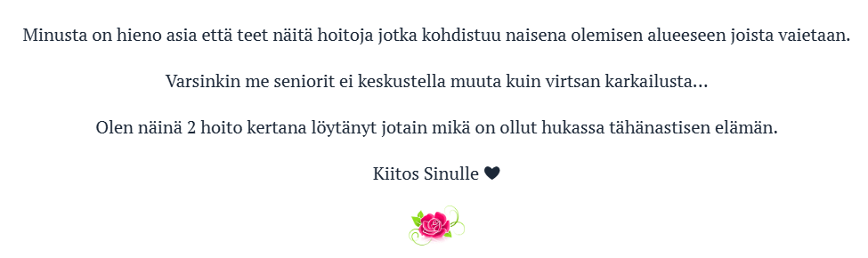 "Kiitos Kaisa. Kuuntelin nyt tuon emättimen osuuden 3. Kerran. Toisella ja nyt 3 kerralla vapautui iso määrä surua, häpeää jne. Joita purin itkun kautta.
